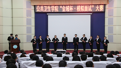 为增进学生对求职面试的了解,提高学生面试的心理素质,掌握面试的技巧与礼仪,公共卫生学院于2016年12月5日在校本部图书馆报告厅举办了第九届“金域杯·展我风采”模拟面试大赛。泰山医学院教务处处长徐慧、人事处副处长曹斌、学工处副处长张洪涛、济南金域医学检验中心有限公司人力资源部人事主管张菁、公共卫生学院副院长张钦凤、副院长江新泉担任比赛评委。济南金域医学检验中心有限公司副总经理王丙维应邀出席此次比赛。