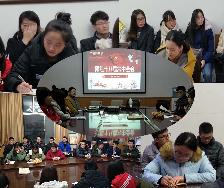 2016年11月24日下午五点半,基础医学院2014级学生党支部在天外村校区四楼会议室集中学习党的十八届六中全会精神。