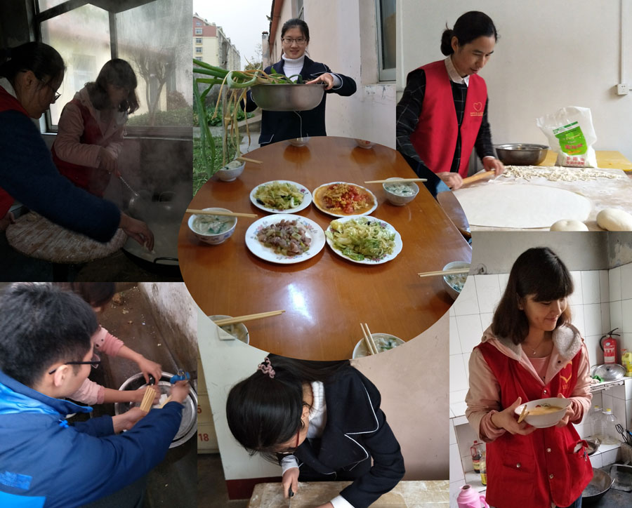 上午八时许,社会实践部志愿者们身着统一服装,把带来的慰问品分发给各位老人。大家分成几个小组,有的陪老人聊天,有的打扫卫生,有的清理排水管道,有的包饺子准备奉献一顿丰盛午餐。小伙伴们各司其职,团结协作,到了中午,敬老院里整洁干净,一碗碗热腾腾的饺子送到了老人的房间,深秋的敬老院其乐融融。