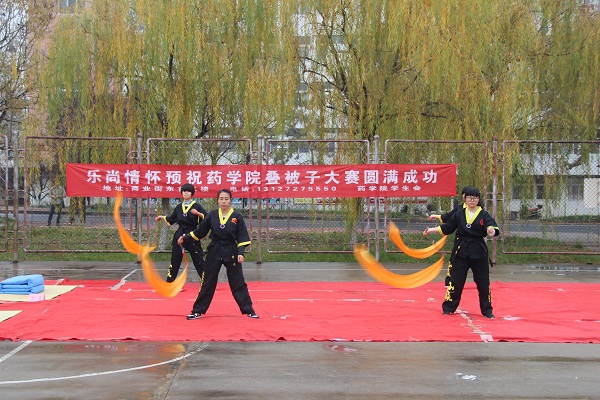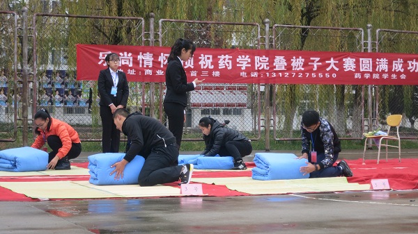 为鼓励同学们认真整理内务,养成严谨细致的生活作风,药学院于11月19日上午在老体育场开展了宿舍文化节之叠被子大赛活动。药学院学团张萌、乔峰及贾伍员老师出席本次活动,药学院2016级全体同学参加了本次活动。