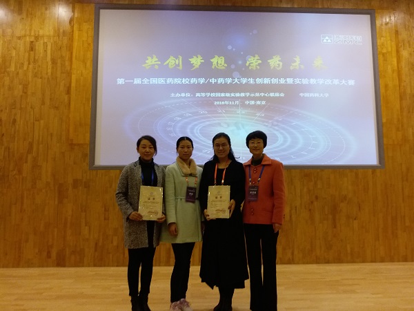 11月10日-12日,第一届全国医药院校药学/中药学大学生创新创业暨实验教学改革大赛在江苏南京举行,药学院师生荣获两项二等奖。