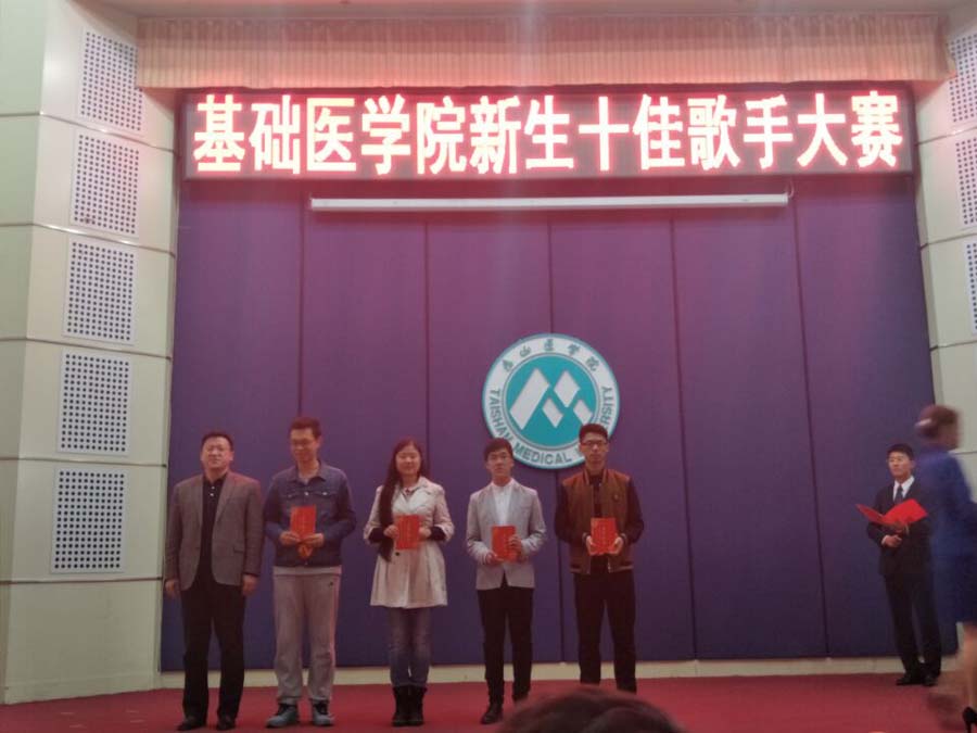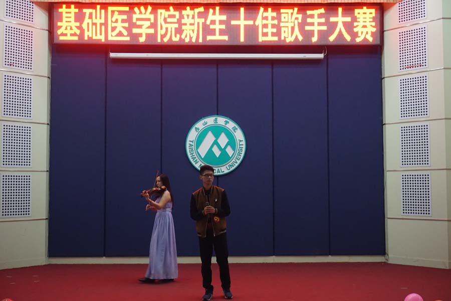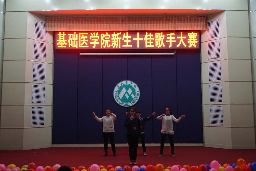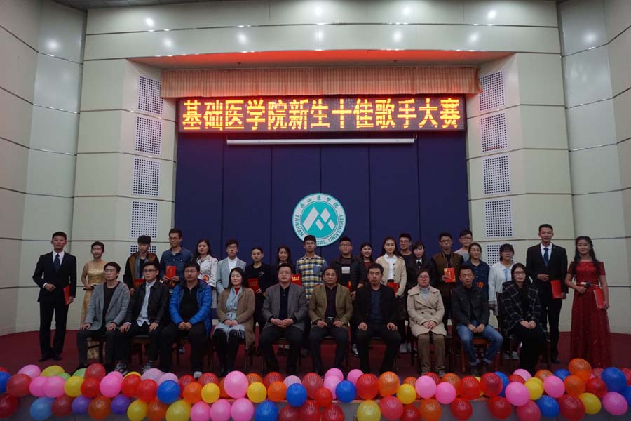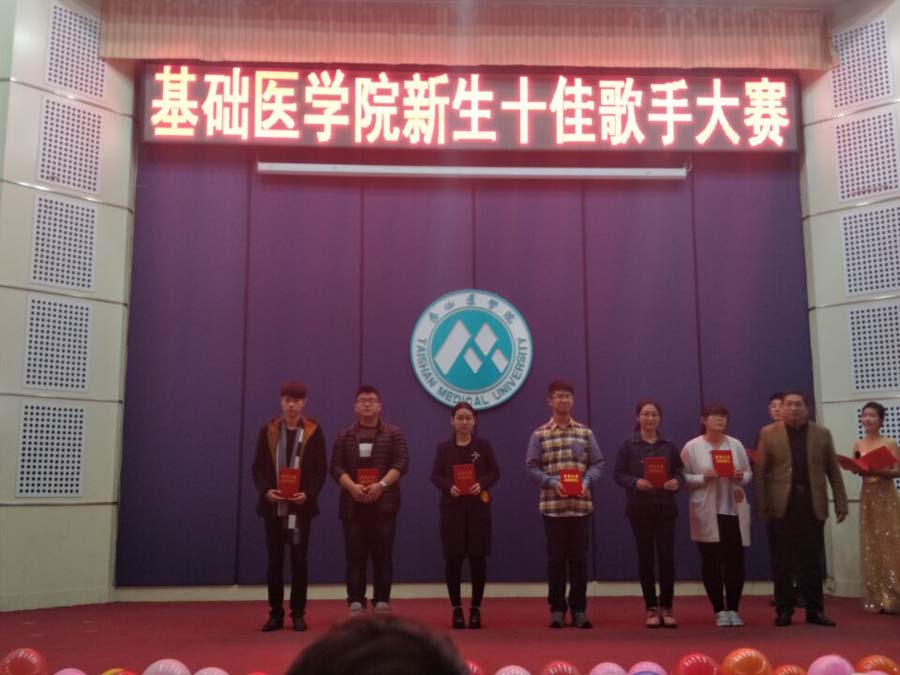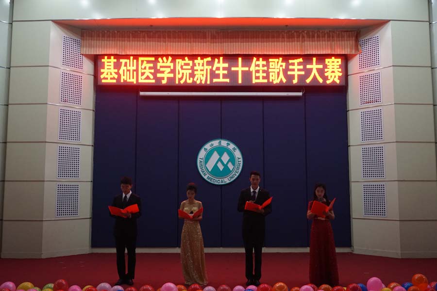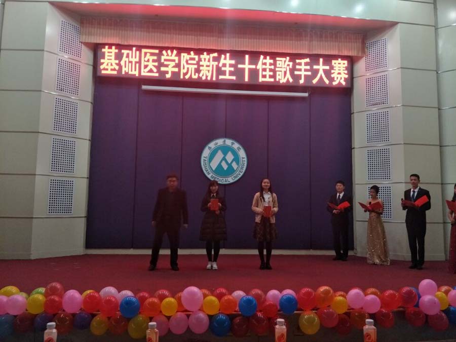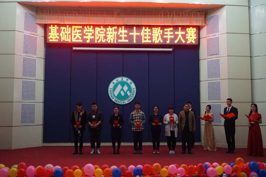 11月11日晚七点,基础医学院第十届新生十佳歌手大赛在校本部图书馆报告厅隆重举行。莅临本次大赛的领导嘉宾有:基础医学院党委副书记王鑫以及团总支、学工办各位老师。担任本次比赛的评委有:泰山医学院学生会主席、大学生社团联合会主席、泰山医学院广播电视台台长、泰山医学院新媒体联合会主席、艺术团团长以及各学院学生会主席。