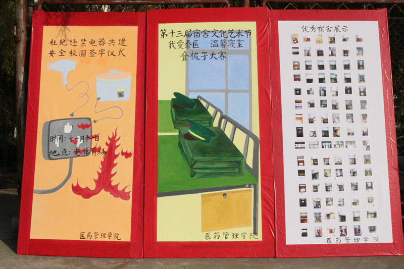 为了进一步强化学生安全管理,促进学生文明行为的养成,营造“安全、文明、卫生、舒适”的宿舍环境和健康向上的良好校风,促进平安校园建设,我院于11月11日下午在老体育场举办杜绝违禁电器签字仪式暨“我爱泰医,温馨寝室”宿舍文化艺术节之叠被子大赛。泰山医学院公寓服务中心主任胡作铭老师、医药管理学院党委副书记王彦老师 、全体辅导员、各相关学生公寓楼长及16级全体学生等参加了此次活动。