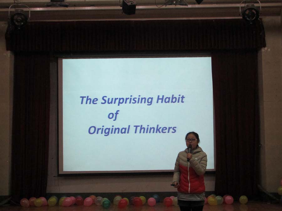本次比赛共分三个环节:自由演讲、新闻理解和配音环节。参赛选手选材内容涉及广泛,发音标准,表达流利,显示出深厚的英语语言功底和灵活的应变能力。更有优美的歌曲、幽默的哑剧调节比赛的紧张氛围。经过评委的综合评审,孟子葳同学以标准的发音、流利的口语、突出的表现获得本次比赛的冠军,郭丽宁、张恒哲同学荣获二等奖,张芊、张小宇同学荣获三等奖。