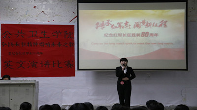 为纪念红军长征胜利80周年,弘扬长征精神,让同学们进一步加深对长征精神的认识,同时点燃同学们学习英语的热情。公共卫生学院于11月2日在校本部物理楼报告厅举行“弘扬长征精神,唱响未来之歌”英语演讲比赛,出席此次大赛的有来自外国语学院的两位嘉宾评委以及公共卫生学院第14届学生会主席团成员。