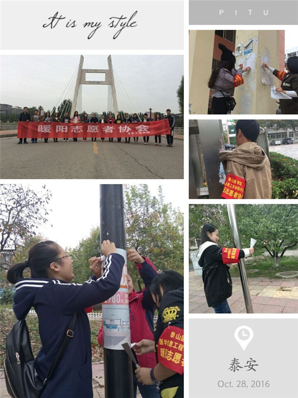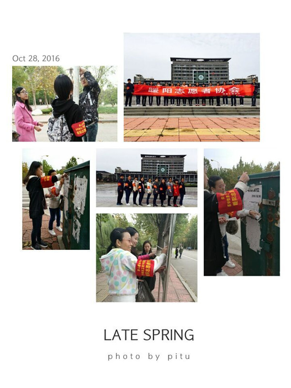 10月27号至28号下午,医学信息工程学院暖阳志愿者协会以“纯纯校园风,殷殷泰医情”为主题开展了美化校园活动,广大学生热情参与。