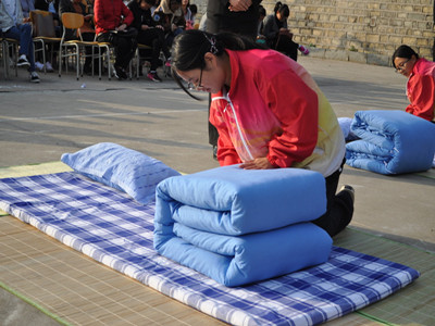 叠被大赛暨宿舍文化节开幕式的成功举办强化了宿舍内务整理,提高了同学们整理内务的意识,为打造温馨舒适的宿舍环境、推动学院精神文明建设进程、提高全院学生自理能力奠定了良好基础。