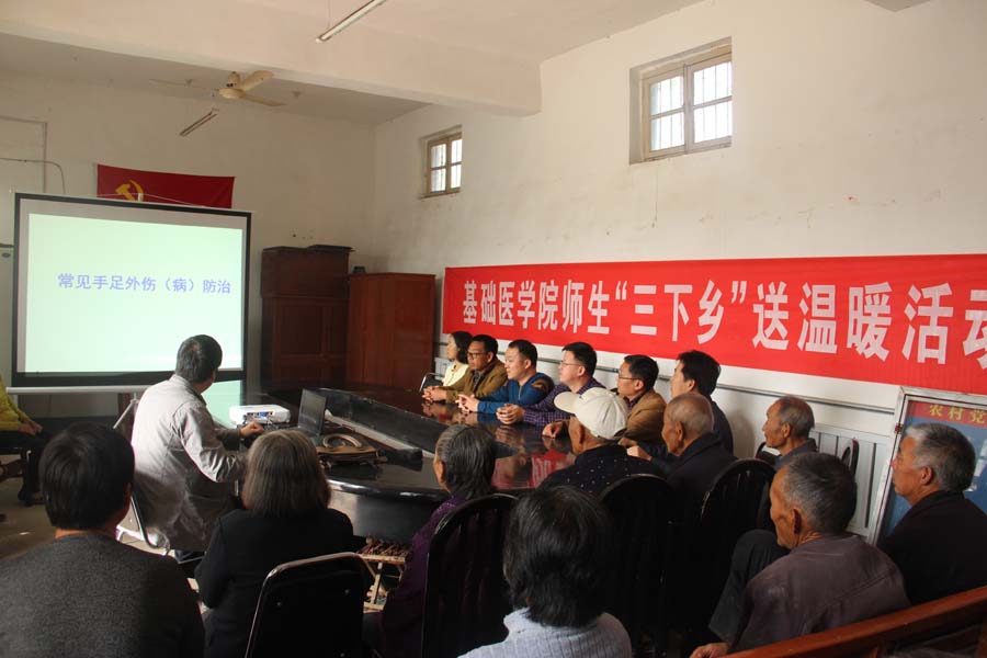 此次“三下乡”包括送资助基金下乡、送医疗知识下乡、送爱心衣物下乡,体现了基础医学院全体师生关注农村建设发展、关心困难学子成长成才、关爱群众生活健康的社会意识,把党的温暖送到农村,把医疗知识带到农村,把健康生活的理念撒到农村。