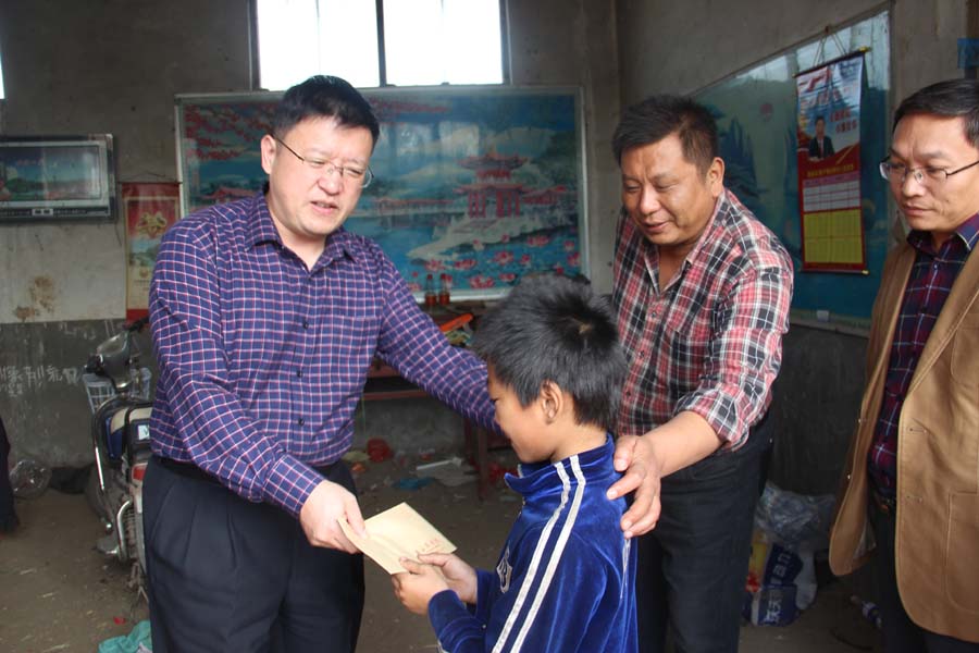 王鑫一行,和我校帮包村“第一书记”一起,分别走访了鲁屯村、常庄村、东史庄村困难家庭,将今年“七一”期间广大师生党员捐赠的爱心基金和爱心衣物亲自送到困难学子手中,叮嘱孩子们积极克服困难、不畏艰难、认真学习,寄语其在各界关爱下成长成才。