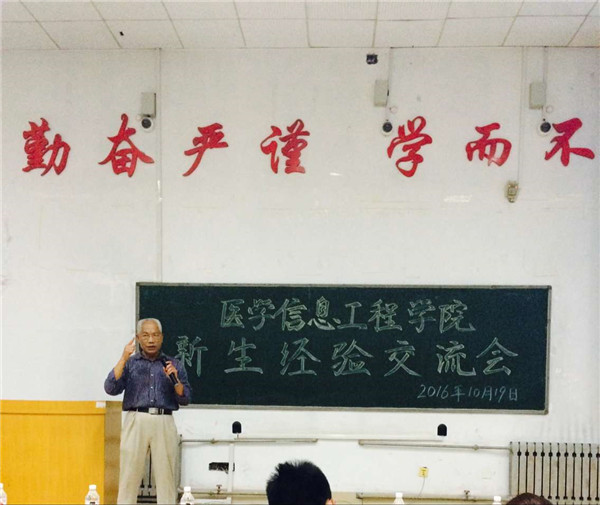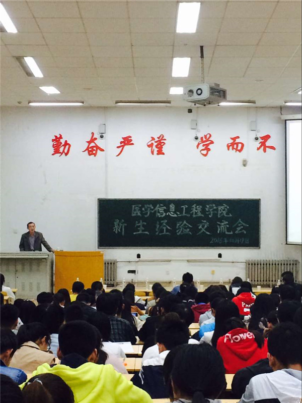 10月19日晚,医学信息工程学院于教学南楼C座召开医学信息工程学院新生经验交流会。优秀教师刘照军、彭磊应邀出席。