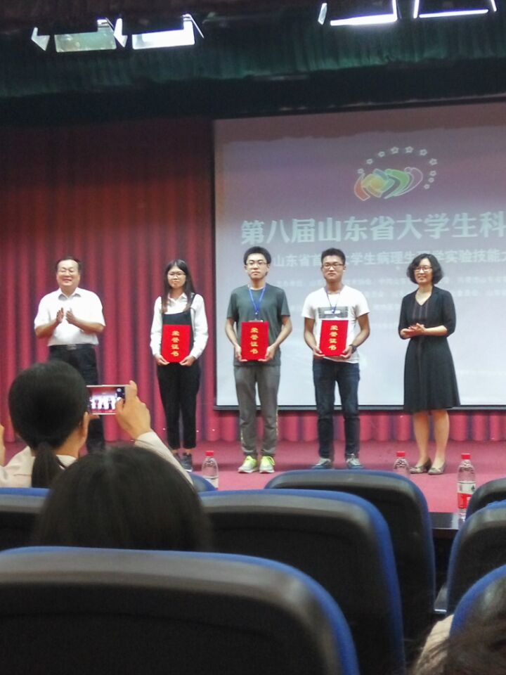本次大赛是山东省第八届大学生科技节的赛事之一,由山东省科学技术协会、中共山东省委高校工委、共青团山东省委员会、山东省发展和改革委员会、山东省经济和信息化委员会、山东省教育厅主办,山东病理生理学会、潍坊医学院承办。经前期网上申报、专家盲评,来自全省 6所高校的10支参赛队伍进入决赛。经过现场操作比赛和评委答辩环节,最终角逐出特等奖2项,一等奖3项,二等奖5项。