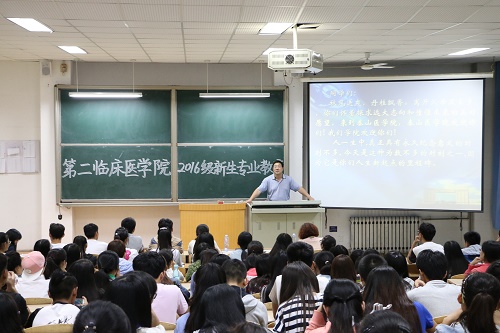 良好的开端是成功的一半,为了帮助新生翻开新篇章,开启新征途,第二临床医学院2016级新生专业教育大会于9月27日晚在教学北楼A1012举行。第二临床医学院院长张敬军、副院长柳韦华、各年级辅导员以及2016级所有新生参加了大会。
