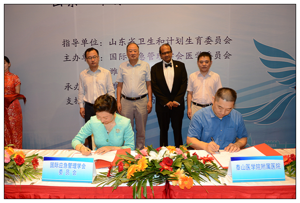 9月28日,国际应急管理学会医学委员会(TEMC)国际研修项目山东省经验交流会在潍坊举行。为加强与TEMC的合作,借助TEMC平台推动医院人才、科研以及学科建设,院长李长勤、TEMC主任陈冉分别代表我院与TEMC签署战略合作协议。党委书记刘建波、副院长贾庆卫及院办、科教科负责人出席会议并共同见证签约仪式。潍医附院同期签约。