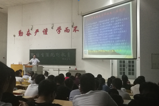 在大学生助学导航教育、学籍管理教育及职业规划教育中,刘玉、张志宏、杜伟老师分别为新生就关心的问题进行了解答。刘玉老师给大一同学们介绍了奖贷勤补免的主要政策以及违纪处理规定,通过分析奖助学金的具体评选标准,激励同学们在学习方面积极上进。在随后的学籍管理教育专题中,张志宏老师向新生说明了学籍的概念和作用,以及个人的学籍信息的管理方法和流程。最后,在职业规划教育专题中,杜伟老师用数字告诉新生们如今严峻的就业形势,要求同学们要提前树立规划意识,并从多个方面给同学们敲响了警钟,希望同学们面对社会需求早做准备。更强调了就业对一生的影响,希望同学们珍惜在校学习时光,把握好自己的人生。
