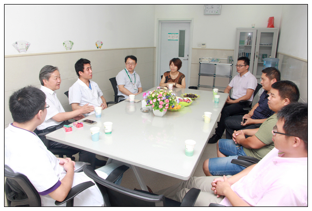 来访客人参观了眼科门诊,并就视光学科研合作项目内容与眼科科研合作小组成员王艺博士等人进行洽谈,期间双方互通有无,对科研课题的可行性及社会意义等进行了论证。肖强、李晓梅及社区医疗协作部主任吕方启分别与山东北方光学电子有限公司负责人进行了项目合作方面的沟通与商谈,双方初步达成了合作意向。