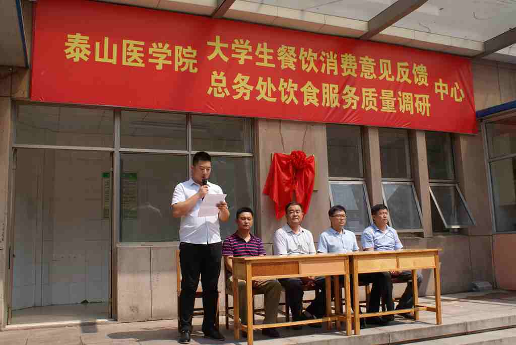 6月27日,泰山医学院大学生餐饮消费意见反馈暨总务处饮食服务质量调研中心成立并举行揭牌仪式,总务处处长刘均民、校团委书记刘希欣、饮食服务中心及学生代表70余人参加了此次活动。