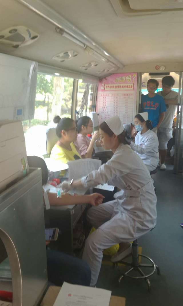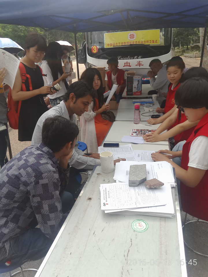 在这三天的献血活动中,大学生们献血热情高涨,有很多外国留学生积极踊跃报名献血,以实际行动彰显了爱心无国界;很多学生党员也加入到了献血活动中,充分把“两学一做”落到了实处,发挥了党员的先锋模范带头作用。献血的同学们表示,无偿献血以救助人生命为目的,希望可以尽自己的一份力,救助更多的人。在献血车里车外,随处可见身着红色马甲志愿者的身影,他们都是来自基础医学院的志愿者,他们为献血人员讲解献血事宜并为他们仔细登记信息,为献血者测量血压和体重,在献血车里,他们忙前忙后照顾因献血产生不良反应的献血者,为他们倒糖水,他们衷心的希望在广大的人群中,可以尽自己的一份力,将全社会公益爱心事业进行到底。