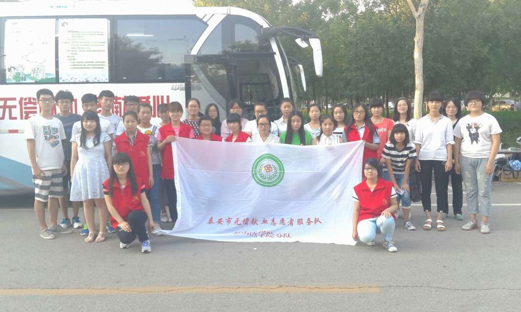 基础医学院无偿献血志愿者服务队是首家正式成立的驻泰高校无偿献血志愿者大学生分队。我校学生自愿献血,提高自身素质,以博大的胸怀关怀社会,奉献青春。这种公益行为让广大同学以实际行动践行了社会主义核心价值观,同时激发了同学们的爱心和回报社会、回报祖国的美好愿望,使义务献血者们成为新一代大学生的榜样。