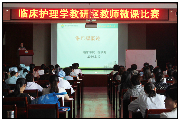 2016年6月13日下午,临床护理教师微课教学比赛在综合病房楼学术报告厅举办。这是临床护理教研室“传道授业,医路有我”为主题的“临床护理教师微课教学比赛”计划的启幕,也是创新课堂教学的又一举措,旨在通过对微课的探索,对全院护理教师进行一次教学大练兵活动,以进一步规范教学管理,提升课堂效率,提高教学质量,力争在今年的护理专业认证中取得优异成绩。