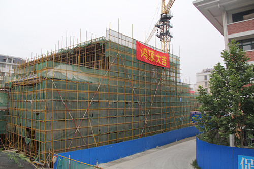 6月2日,留学生服务中心主体工程如期顺利封顶。