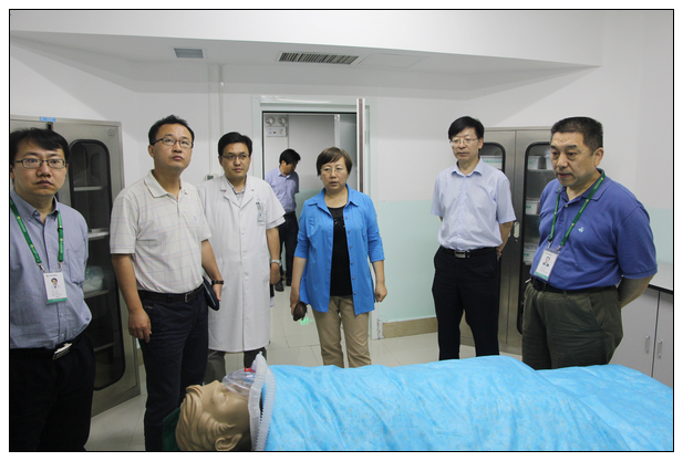 2016年5月30日下午,院长李长勤,副院长贾庆卫、杨晓雯、肖强、王俊勤带领医务处、基建科、宣传科等职能部门到我院住院医师规范化培训基地临床技能模拟培训中心调研指导。