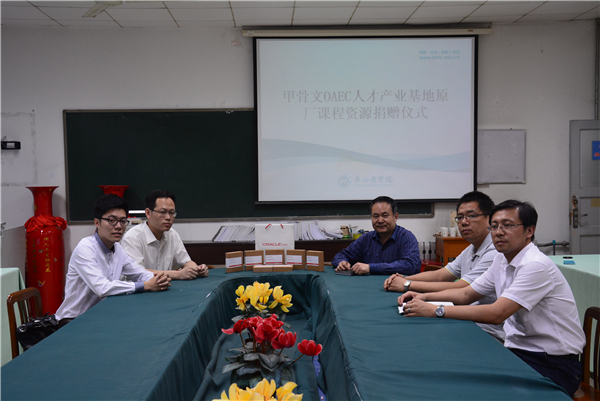 5月25日上午,在物理楼信息工程学院会议室举行甲骨文OAEC人才产业基地原厂课程资源及Oracle软件捐赠仪式。甲骨文(山东)OAEC人才产业基地教育事业部副总经理龚西旭,信息工程学院院长张兆臣等出席了捐赠仪式。