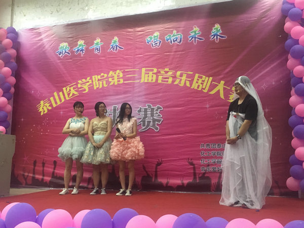 由校团委主办,化工学院团总支承办的泰山医学院第三届“歌舞青春,唱响未来”音乐舞台剧大赛于5月22日晚正式在物理楼报告厅拉开帷幕。校团委吴永老师、教务处张宏志老师、人口与计划生育学院孔祥军老师及化工学院学团各位老师出席了本次比赛。来自各个学院的七项剧目进入大赛决赛。
