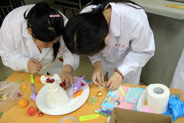 来自药学院、放射学院、运动医学与康复学院、公共卫生学院、管理学院的五支队伍参加了比赛。活动分为食装比拼和冷拼制作两个环节。