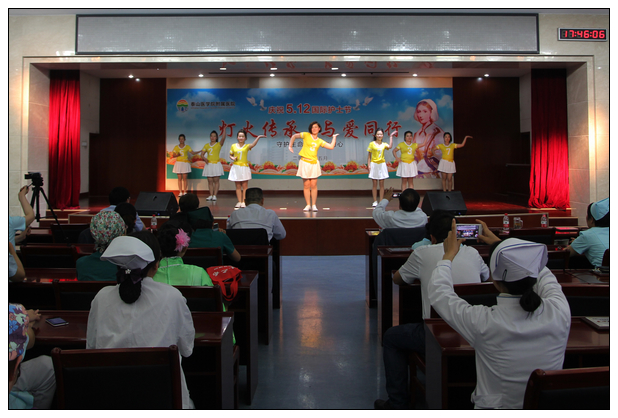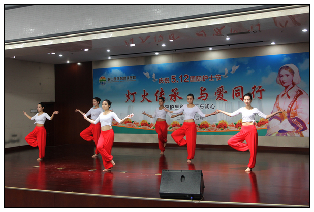 表彰大会结束后,即进入了文艺演出环节。在一曲轻柔舒缓的舞蹈《茉莉花》中,我院2016年庆祝国际护士节文艺演出精彩上映。歌伴舞《天使修炼手册》,活力四射,充满青春气息。小品《我是男护士》讲述了在“女儿国”一样的护士职业圈,体力强壮、精力充沛男护士的生活。瑜伽表演《舞韵瑜伽》、现代舞《舞动旋律》点燃了现场观众的热情,赢得了阵阵掌声。《天使颂》、《感恩的心》、歌曲串烧《人间》等展现了我院护理人员积极向上的精神风貌。豫剧《谁说女子不如男》、三句半《说说护理那些事》形式新颖,颇受好评。首次登台演出的相声《满腹经纶》以活泼搞笑的语言,博得观众阵阵欢笑。小品《戒烟》讲述了我护理人员以身作则,为创建无烟医院尽职尽责的小故事,引起现场观众的共鸣。走秀《魅力女人 职业女性》将演出推向高潮,平日着隔离衣燕尾帽端庄大方的她们,在舞台上,或美丽时尚,或清新温婉,或成熟干练,给人留下深刻的印象。演出在民族舞《共圆中国梦》的绚丽舞姿中落下帷幕。演出结束后,院领导与演出护士亲切合影留念。