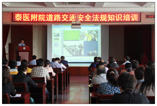 5月6日下午,我院举办交通安全知识讲座,泰安市公安局交警支队城西大队副大队长王鑫、城西大队事故中队中队长段世鹏来院作《关爱生命 出行安全》讲座。院长李长勤,党委副书记胡建功,副院长贾庆卫、杨晓雯、肖强、王俊勤及我院200余名干部职工聆听了讲座。