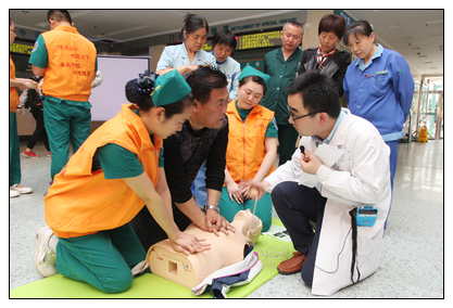 我国心血管疾病的发病率逐年上升,心血管疾病中最凶险的病种心源性猝死也明显增加,每年发生例数约55万例,平均每天约有1500人死于猝死。面对猝死患者,最有效的措施就是及时高效地进行心肺复苏。1分钟内开始的心肺复苏,患者生存率可高达90%,以后每延迟1分钟,患者死亡率将增加10%,超过10分钟复苏成功率几乎为零。在欧美国家,心肺复苏技术早已是普及到公众的生存技能,近年来我国也加强了心肺复苏技能的推广和培训,“人人参与,把握急救的黄金时间,提高猝死患者生存率”,这也是我院举办“护佑生命、救在身边”心肺复苏培训公益活动的目的所在。