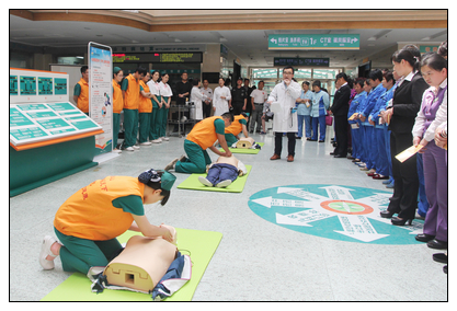 为了让更多公众认识并掌握心肺复苏术,2016年5月4日下午,我院在门诊大厅开展了“护佑生命 救在身边”心肺复苏公益培训活动,来自泰医附院南丁格尔志愿护理服务队急诊分队的医护人员在门诊大厅手把手教授往来群众做徒手心肺复苏术,受到群众的好评。