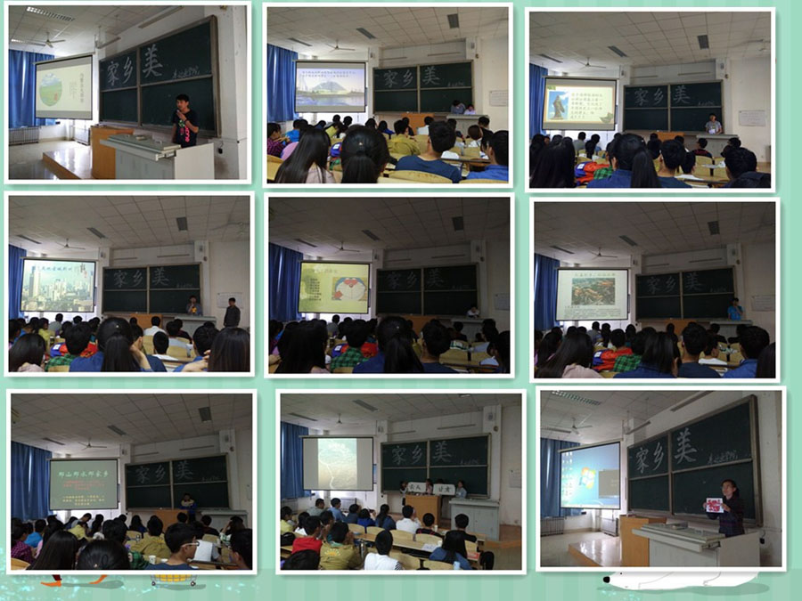 4月22日在北楼B3018教室基础医学院2015级新生于举办了“家乡美”主题班会活动。参加本次活动的学生主要来自于甘肃、湖北、内蒙古和山东各地的同学,本次活动主要分为四个部分,分别为乡恋、乡音、乡念以及知识问答,首先学生以ppt的形式介绍了家乡的魅力景色、风土人情、特色美食以及历史文化,其次学生运用方言邀请同学们去自己的家乡游玩,各地的学生分别展示了家乡的传统文化艺术,比如剪纸、书法、地方戏曲等。最后知识问答环节,同学们争先恐后回答问题,此环节体现了学生对祖国优秀文化的继承和发扬。