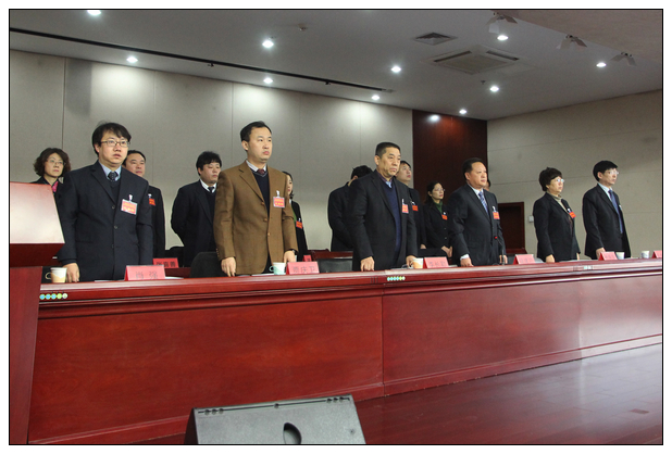 与会代表起立、奏国歌