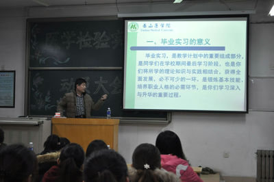 为提高医学检验专业学生的临床技能,使学生明确工作岗位要求,2016年1月4日下午,公共卫生学院在教学南楼C座1006教室召开了医学检验专业实习动员会。公共卫生学院副院长江新泉、辅导员邓阳以及2014级医学检验专升本1班全体学生参加了本次会议。