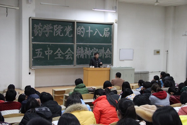 为深入学习和广泛宣传党的十八届五中全会精神,深刻领会《中国共产党廉洁自律准则》《中国共产党纪律处分条例》对党员的具体要求,进一步推进“三严三实”专题教育,药学院分党委在11月中旬至12月中旬,开展了药学院第二届“理论学习活动月”活动,全体教工党员、处科级干部、2015年下半年新发展的学生预备党员,共计55名同志人参加了学习活动。