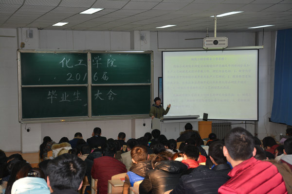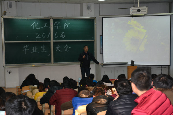 赵传华老师传达了学校毕业生就业工作会议精神,结合化工学院2015年就业工作取得的成就和经验,对毕业生就业做了动员,详细介绍了国内就业形势,以及省内外化工、制药、环保等企业招聘情况,鼓励同学们积极创业,他要求学生做到“掌握政策、找准方向、明确定位、积极应对”,最后特别强调了毕业环节的安全问题,希望同学们做好就业前的各项准备工作,努力实现毕业生更充分、高质量就业。