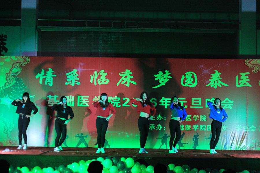 元旦晚会在老师和同学们的共同努力下取得圆满成功,充分体现了基础医学院学子青春昂扬、奋力拼搏、憧憬未来的精神风貌。相信学院全体师生将会以此次晚会为起点,认真总结2015年的工作和学习,展望2016年,继续发扬“临床临床 数我最强”的坚定意志,继续坚持泰医“登攀”精神,以“明德 学是 格物 求真”的校训不断激励前行。