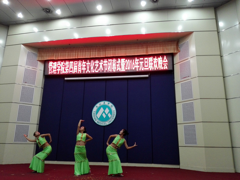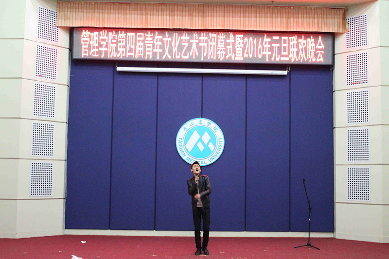 闭幕式晚会在激情四射的舞蹈《MY MY》中拉开帷幕,随后管理学院院长许彦彬发表了讲话,他肯定了此次晚会的重要意义,总结了管理学院在2015年取得的一系列成绩,同时展望2016年,祝愿管理学院在新的一年取得更好的成绩。在接下来的文艺表演中,一个个节目精彩纷呈,小品《甄嬛后传》给大家带来了阵阵的欢声笑语;王宁同学表演的精彩魔术把师生带进了神奇的魔幻世界;奔放的流行歌曲和绚丽的民族舞蹈给大家带来了不一样的视听体验。在晚会进行中,学院对在青年文化艺术节中表现突出的先进集体和个人进行了表彰。最后,同学们用振奋人心的合唱表达了对党和国家的热爱以及对老师、同学们的新年祝福。