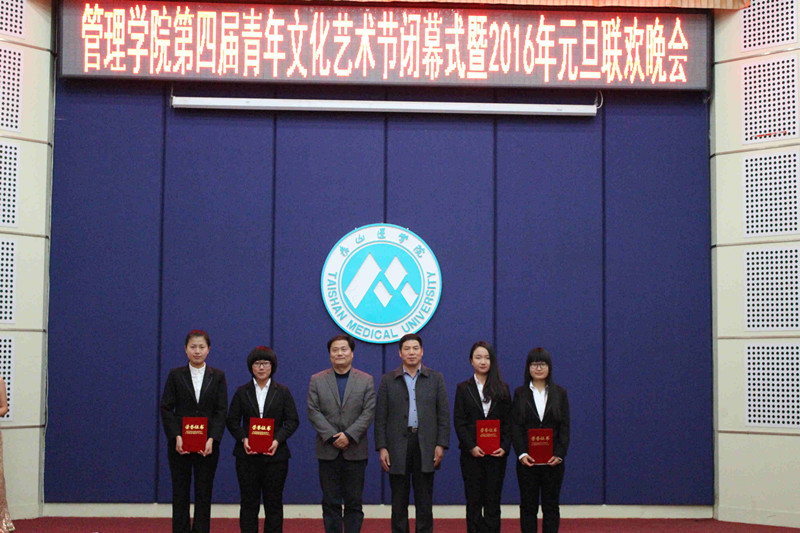 为了丰富同学们课余生活,提高大学生综合素质,打造精品校园文化,管理学院于12月19日在图书馆报告厅举办了第四届青年文化艺术节闭幕式暨2016年元旦联欢晚会。学院党委书记张峰、院长许彦彬、副书记王彦、副院长苏宝利,学院科以上干部及各系主任、部分教师代表,学生代表参加了闭幕式。