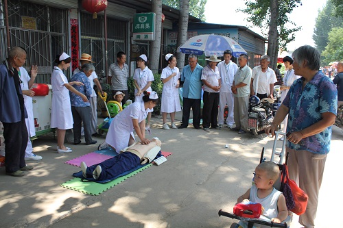 服务队走进丁家洪沟村开展急救技术普及活动