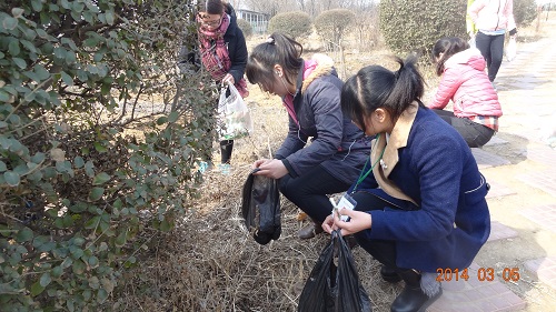 队员利用课余时间捡拾校园垃圾