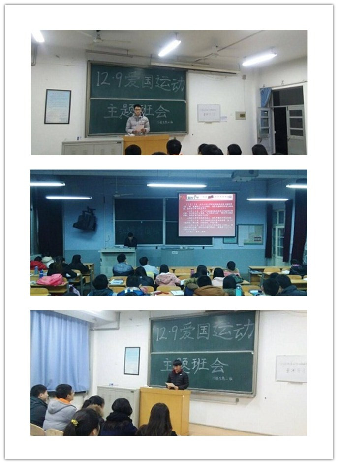 2013级同学首先观看了纪录片《一二九运动》,所有人都被北平学子的爱国情怀及救国热情感染。随后,班长徐鹏志认真向大家讲解了这段历史的发展背景、过程及其历史意义,在场的每一位同学都热血沸腾、激情澎湃,将主题班会推向高潮。2014级同学们就“勿忘一二九,实现中国梦”为主题进行了热烈讨论,同学们踊跃上台表达自己的感受与主张,感怀历史,展望未来。2015级同学则进行了“铭记一二·九,弘扬爱国情”主题演讲。同学们用激昂的话语、饱满的感情,表达了自己对祖国深深的热爱。