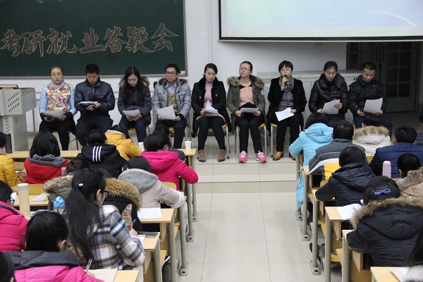 首先,各位老师针对同学们提出的关于考研就业方面的相关问题作出了具体答复,对何时分配考研自习室、参加考研补习班是否有用、实习地点学校是否安排、以何种方式获取招聘单位信息等四十多个问题进行了详细解答。其中,对于同学们关注率最高的问题——药学类专业的就业方向、就业前景以及考研学校和专业的选择,老师们表示药学类专业就业面较广、就业率较高、就业前景良好,学生可自由选择在高校科研机构、企业研发部门,或是在医院、药厂从事基础工作。但与此同时,就业层次尚有待提高,因此,同学们应注重提高专业水平和素养。同时,老师们也提醒有意向考研的同学们在选择考研学校及专业时,要关注学校的招生简章及相关专业导师的具体研究方向并结合自身实际情况选择学校和专业。