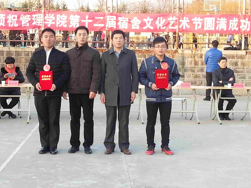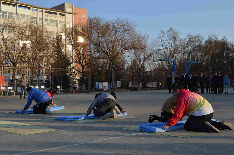 为进一步强化学生安全管理,促进学生文明行为的养成,营造“安全、文明、卫生、舒适”的宿舍环境和健康向上的良好校风,促进平安校园建设,管理学院于10月中旬举办第十二届大学生宿舍文化艺术节系列活动,杜绝违禁电器签字仪式暨“情飘泰医,爱暖宿舍”宿舍文化艺术节之叠被子大赛作为第十二届大学生宿舍文化艺术节的闭幕式于12月3日下午在篮球场成功举行。泰山医学院学工处副处长崔明明老师、泰山医学院公寓服务中心主任胡作铭老师、管理学院党委书记张峰老师、各学生公寓的楼长,管理学院全体辅导员参加了活动。