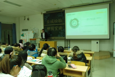 为加强我院与用人单位的交流沟通,为用人单位与毕业生搭建双向选择的平台,2015年11月23日,济南金域检验宣讲团一行4人来我院进行校园宣讲。