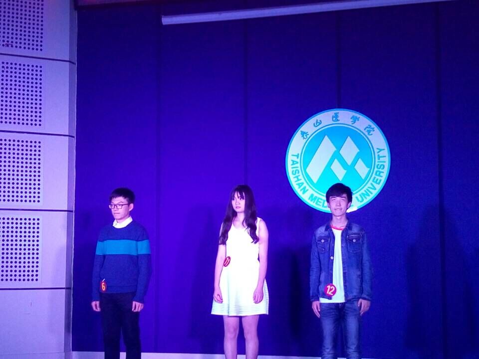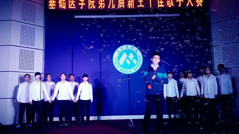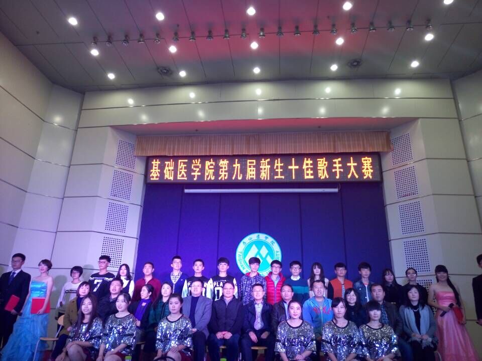 放歌青春,飞扬梦想。经过初赛、复活赛的比拼,11月12日晚7点,由基础医学院团总支主办、基础医学院学生会承办的第九届新生十佳歌手大赛决赛在校本部图书馆报告厅隆重举行,莅临本次比赛的嘉宾有泰山医学院学生工作处处长华波老师、校团委书记刘希欣老师、基础医学院党委副书记王鑫老师以及学工办,团总支的老师们。放射学院团总支书记谢建立老师、口腔医学院团总支书记孙岳鹏老师、人口与计划生育学院团总支书记罗莉老师、基础医学院都清芳老师、王晓哲老师担任评委。