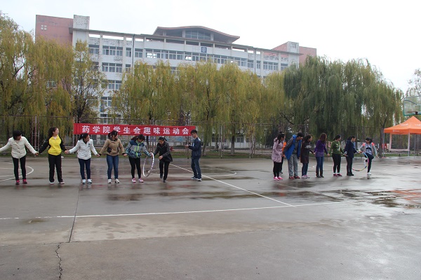 药学院于11月14日上午在老体育场成功举办了趣味运动会,2015级各班级同学和学生会成员共计一百余人参加了此次活动。