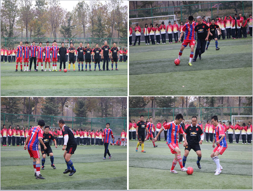开幕式以一场活力四射的啦啦操为开场舞,火辣的舞蹈让站在冷风中的同学们为之一振。由42名同学组成的方队迈着整齐有力的步伐、口中喊着振奋人心的响亮口号走向会场,运动员代表面对在场的领导老师及同学们庄严宣誓,赛出风格、赛出水平,发扬运动员永不服输的精神。开幕式后,同学们观看了师生足球对抗赛,老师们雄姿依旧,同学们正值青春年少、热血澎湃。即使天再冷、风再大,队员们比赛仍旧激烈,同学们的加油声仍旧不断;师生精彩的表现赢得了阵阵掌声。