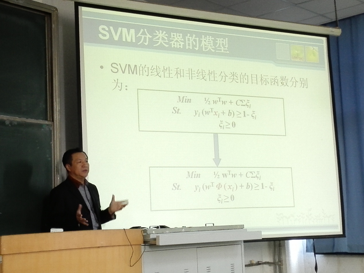 10月16日下午,中国矿业大学丁世飞教授在教学北楼B1006做了题为《孪生SVM理论、方法与应用》的学术报告。200余名师生一起聆听了本次报告。